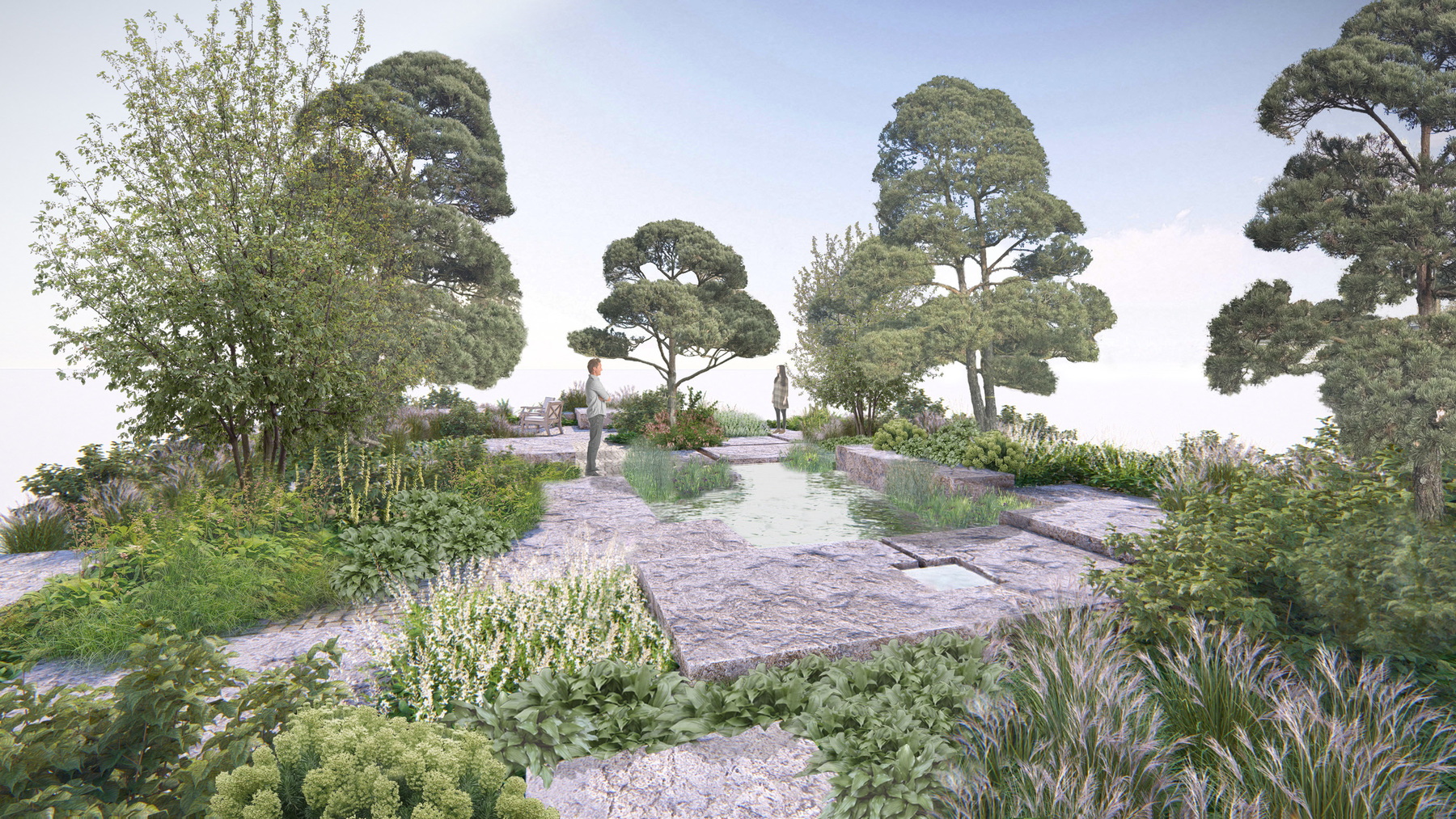 For Giardina 2026 in Zurich, we designed a garden installation in celebration of the show’s 25th anniversary. The project envisions a poetic garden that moves beyond traditional forms, reflecting Swiss landscape culture and the symbolic tree. Mature Pinus sylvestris, cultivated for 40 years by Bernhard Baumschule, are paired with locally sourced sandstone from Bärlocher quarry.